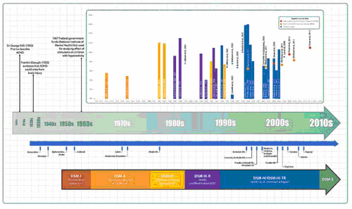 2.ADHD患病率、诊断标准和治疗演变的时间轴